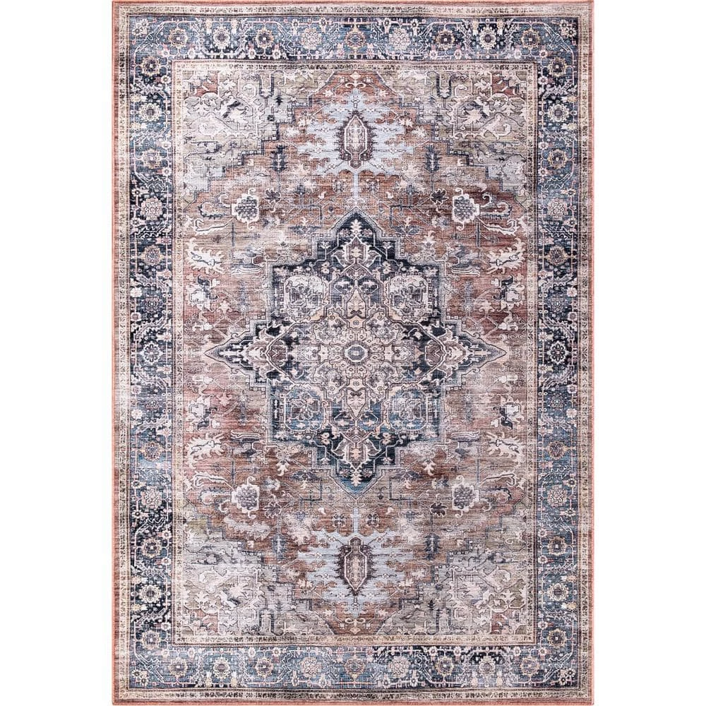 This charming area rug is inspired by classic Persian-style rugs. Tinted in earth toned colors, this rug features an oversized star-like medallion in the center surrounded by beautiful blue ornate border. The rug is created to offer a delicate feel and its weaving process has never made cleaning a rug easier.