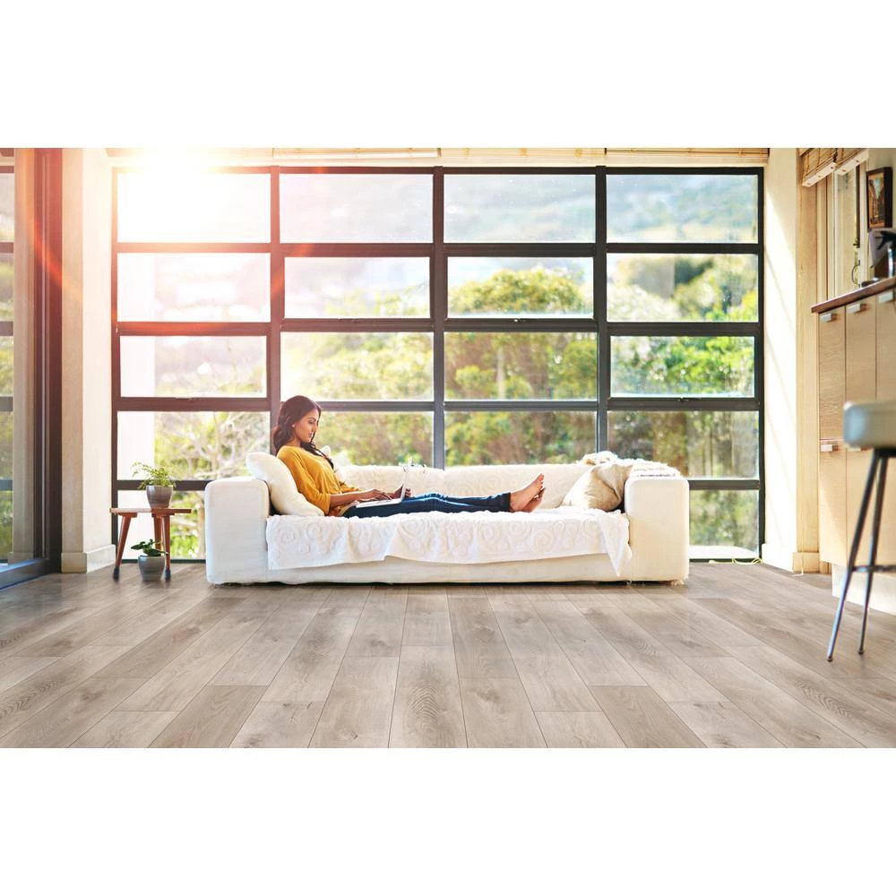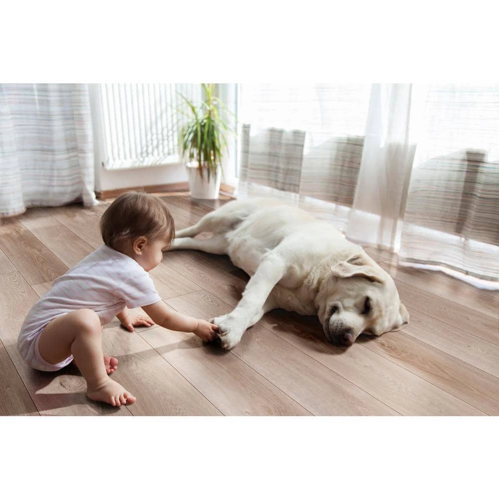 Upgrade the flooring in your home with A&A Surfaces’ Aubrey Groveland Gray Rigid Core Luxury Vinyl Plank Flooring. This LVP is waterproof and scratch, stain and slip-resistant, all with the look of real wood flooring. The pre-attached underlayment and click-lock construction makes installation easy.