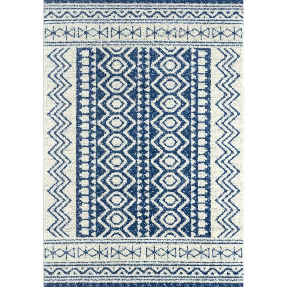 This Casa area rug is inspired by the unique tribal prints of the American Southwest. Historically, these prints evoked protection, comfort, and warm feelings of home. The neutral ivory tone of this area rug is easy to match any existing design aesthetic, whether modern or classic. The shades of navy all come together to create something meaningful and eye-catching. Durable and easy to care for, this area rug is the perfect addition to any existing space in your home in need of an upgrade.