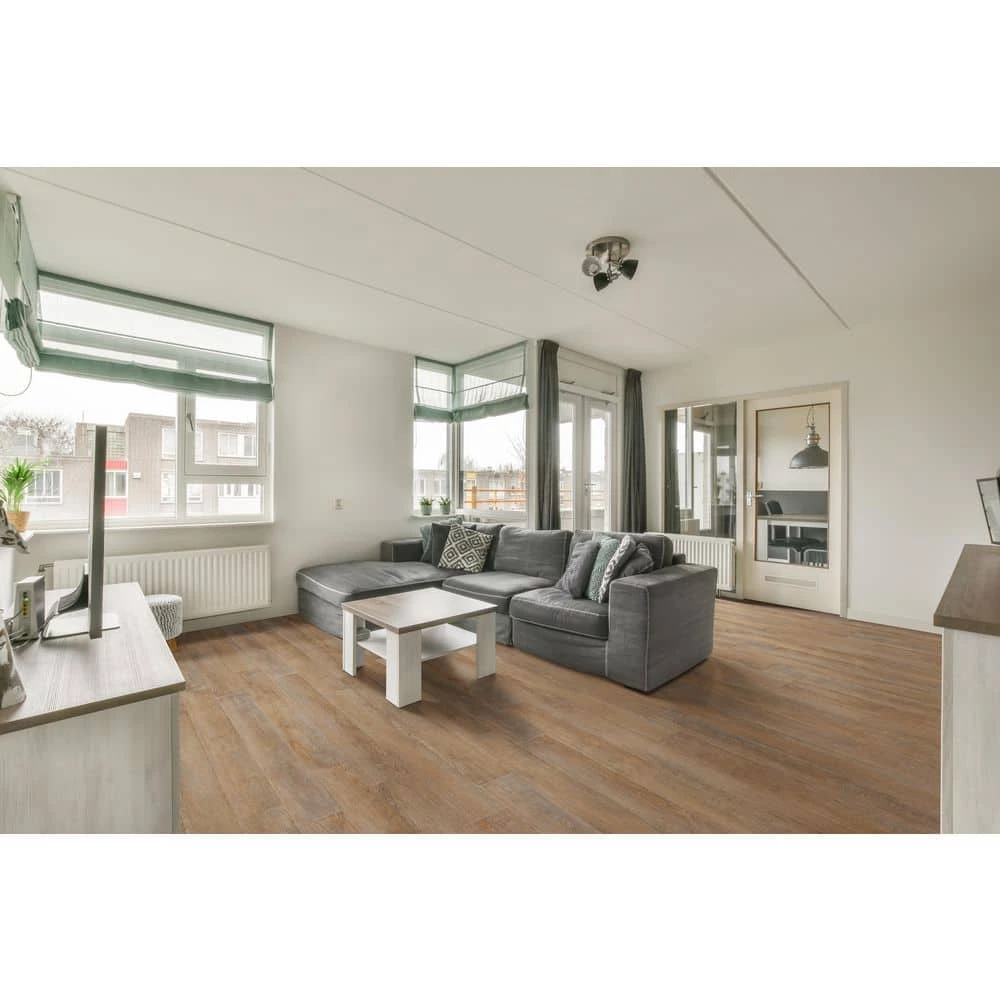 Upgrade your home’s flooring with A&A Surfaces’ Centennial Heirloom Oak 6 in. x 48 in. Luxury Vinyl Plank flooring. The neutral brown background with darker knots and graining mimic the look of real wood. This vinyl flooring is easy to glue down and is backed by a warranty at all grade-levels, so it’s a great choice for any room, including your basement. This durable LVT is great for busy families looking for a flooring that’s both stylish and practical. Coordinating vinyl flooring trim pieces including end caps, stair noses, reducers and T-molding are available to give your residential or light-commercial indoor LVT project a professional, seamless finish. Tile is water, scratch, stain and dent-resistant and backed by a lifetime residential warranty.