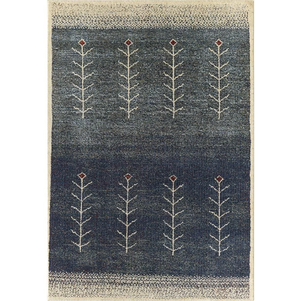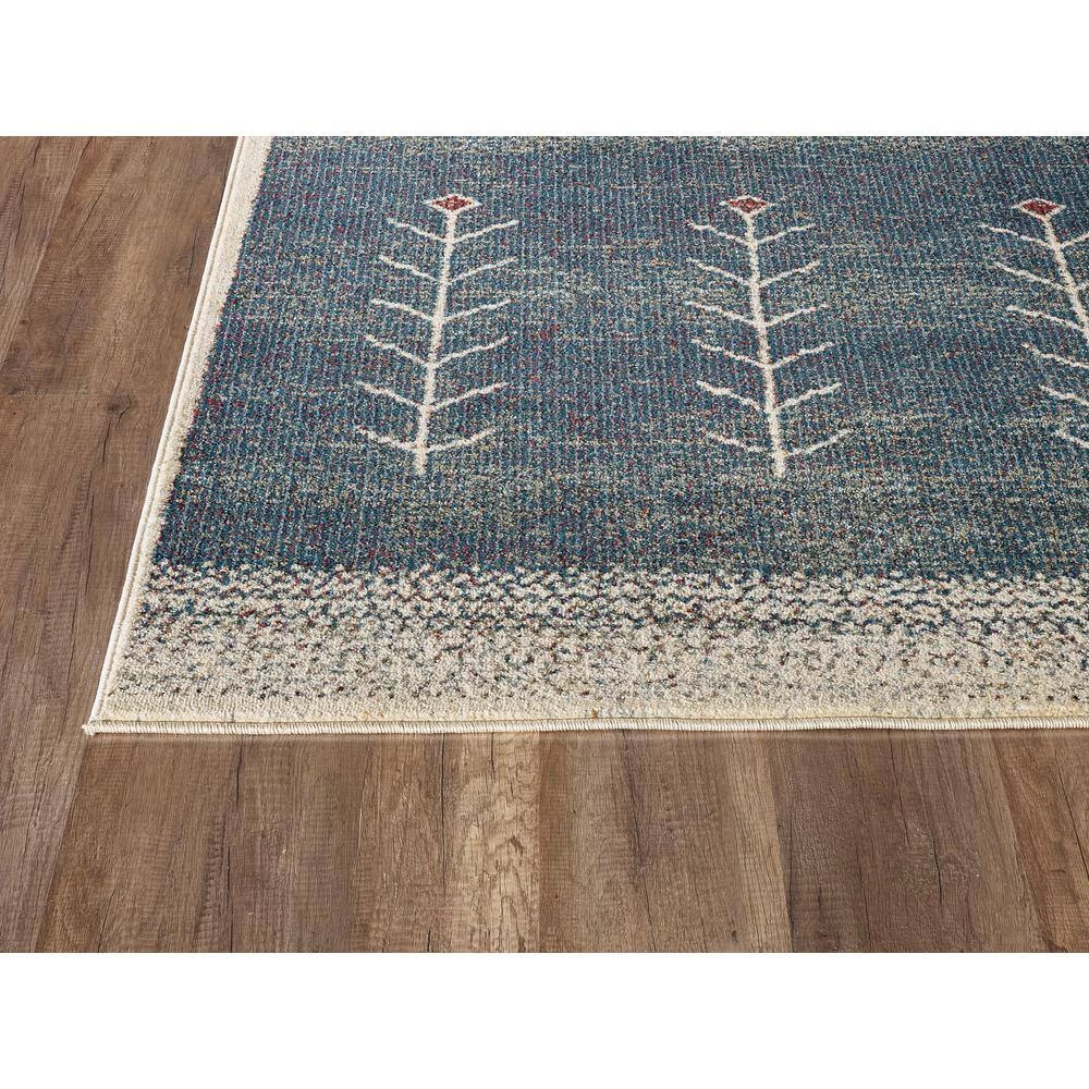 The Mesa blue southwest pattern area rug is inspired by the plains and deserts of the Southwest. In these regions, the culture closely followed the seasons and crop growth. The blue background of this area rug symbolizes the rich vibrancy of planting traditions, while the repeated pattern of plant stalks shows a season of renewal and growth. At the tip of each stalk is a rust red diamond, indicating this is another successful season. This easy-care rug feels distressed and well-loved, a sign of the hardworking tradition of the Southwest. Bring this time-honored tradition into your own interior design.
