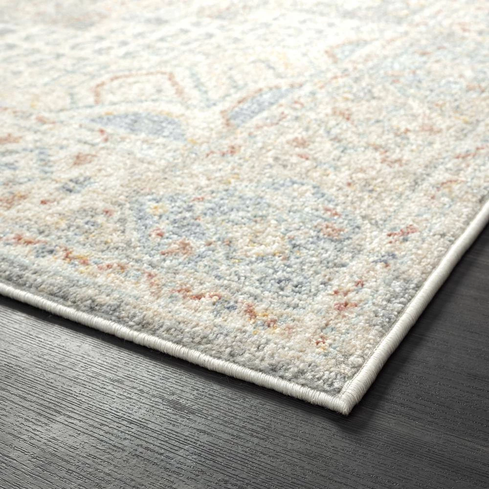 Like a woven work of art, this vintage-inspired area rug design relies on traditions of the past. Resembling gorgeous loom and lace designs, this pattern is completely one-of-a-kind. Though muted with a neutral cream and grey palette, this area rug is anything but ordinary. The intricate details are perfectly balanced and elegant, encouraging your guests to look closely to find the stunning beauty hidden in the details. The perfect balance of comfort and style, this is an easy-care rug you can easily include in your home design.