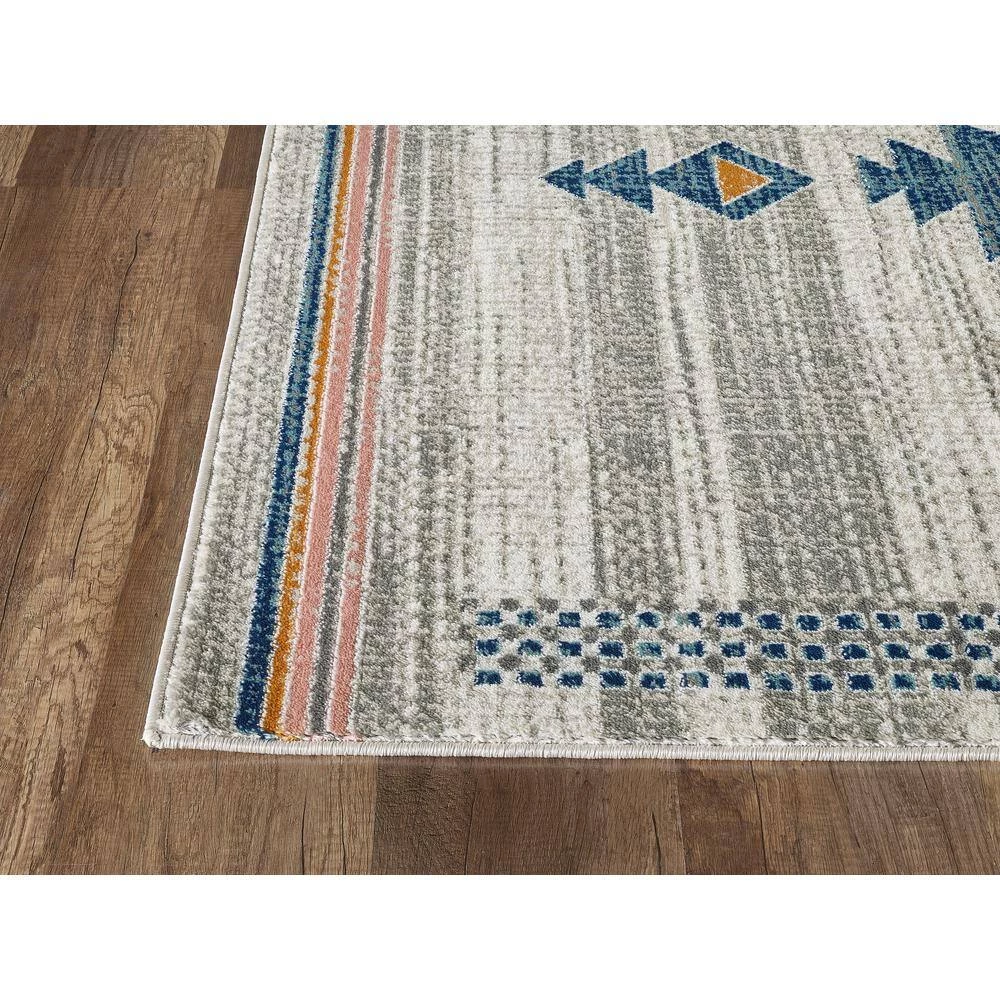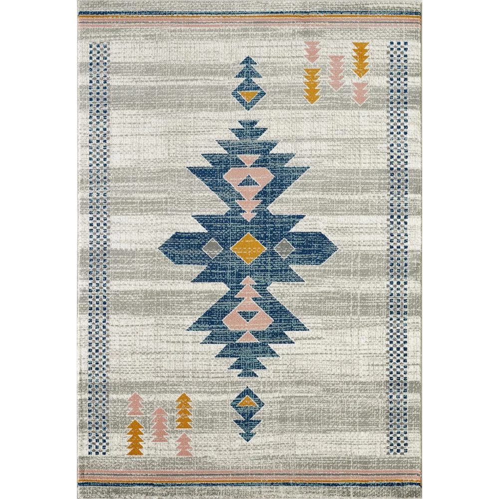 This striking Porto Southwestern style tribal print rug brings all of the adventure and beauty of the American southwest region into your home. The striking tribal pattern features geometric zig-zag edges in a vibrant royal blue, contrasting the coral and orange accents. The outer corners include bordered patterns and orange and red arrows, pointing towards your next adventure. Despite the bold design, the sand colored background helps match this area rug to any space in your home, whether it’s used in your living room or a home office. Make a statement with this easy-care, traditional design that will last for years to come.