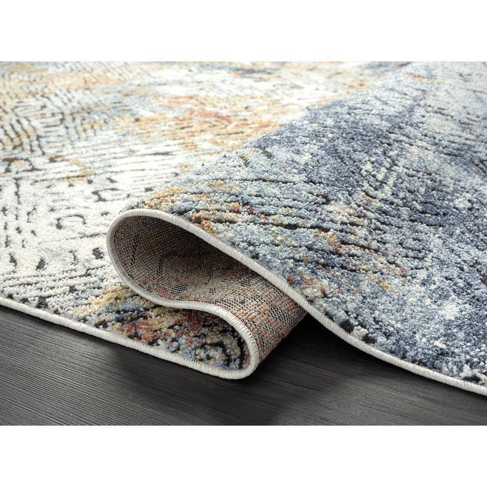 This rug design features a linear etched design in various directions creating an appealing abstract design. Elevate your space with the style and multicolor hues of this area rug. Bring in various decor elements with the greige, blue, red, orange rust found in this rug. The texture of the weave creates a soft rug to adorn your living room, bedroom, dining room or any other space.