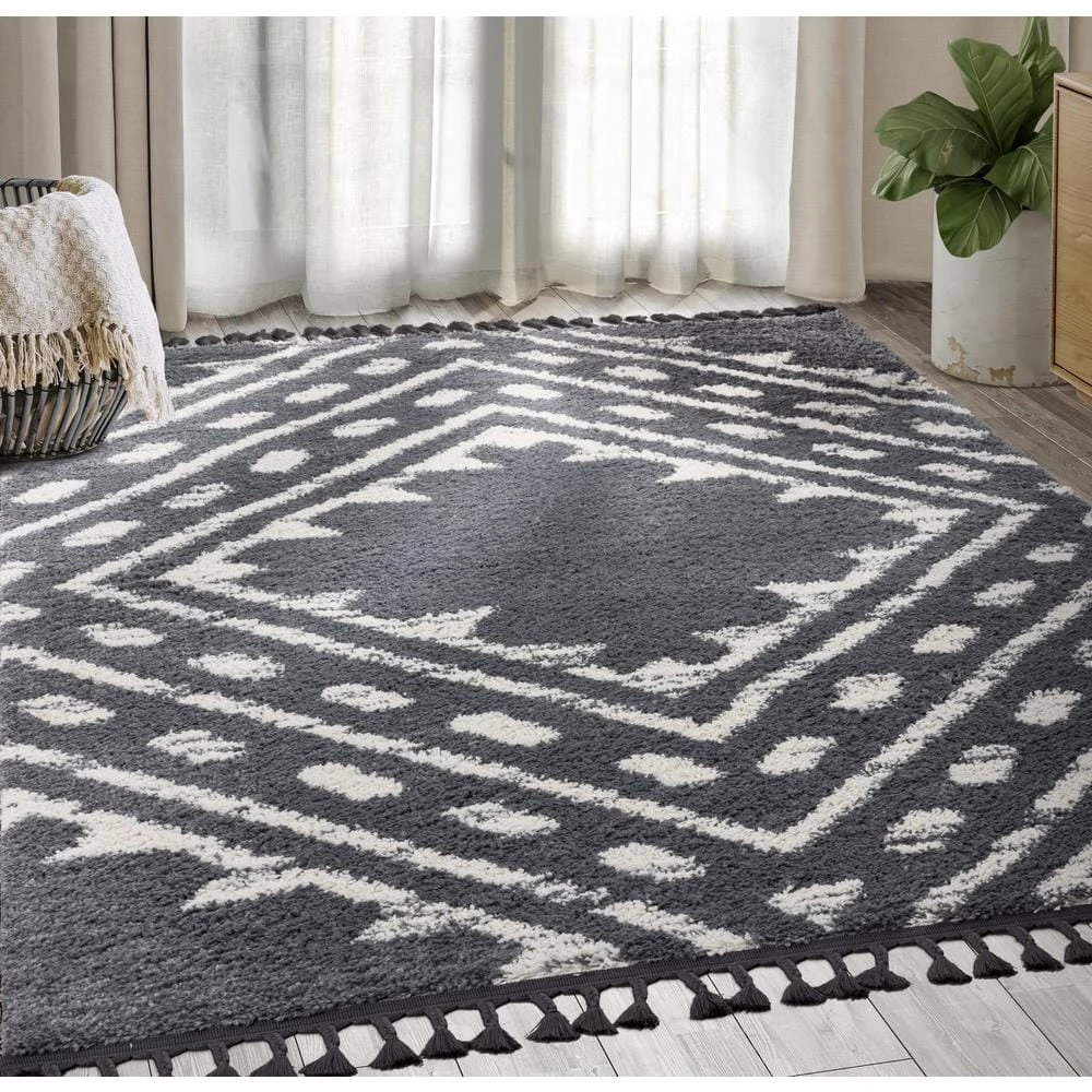 This Willow area rug is inspired by the ancient rug making tradition in Morocco. Though based on century-old artistic designs, this style has a contemporary flair with the neutral grey and cream color scheme. It’s versatile enough to suit any existing interior design style. The rectangular pattern creates a multidimensional border, drawing attention to the unique distressing of this shag rug. The soft feel pairs the old with the new, ensuring this is an area rug design you’ll enjoy for years to come.