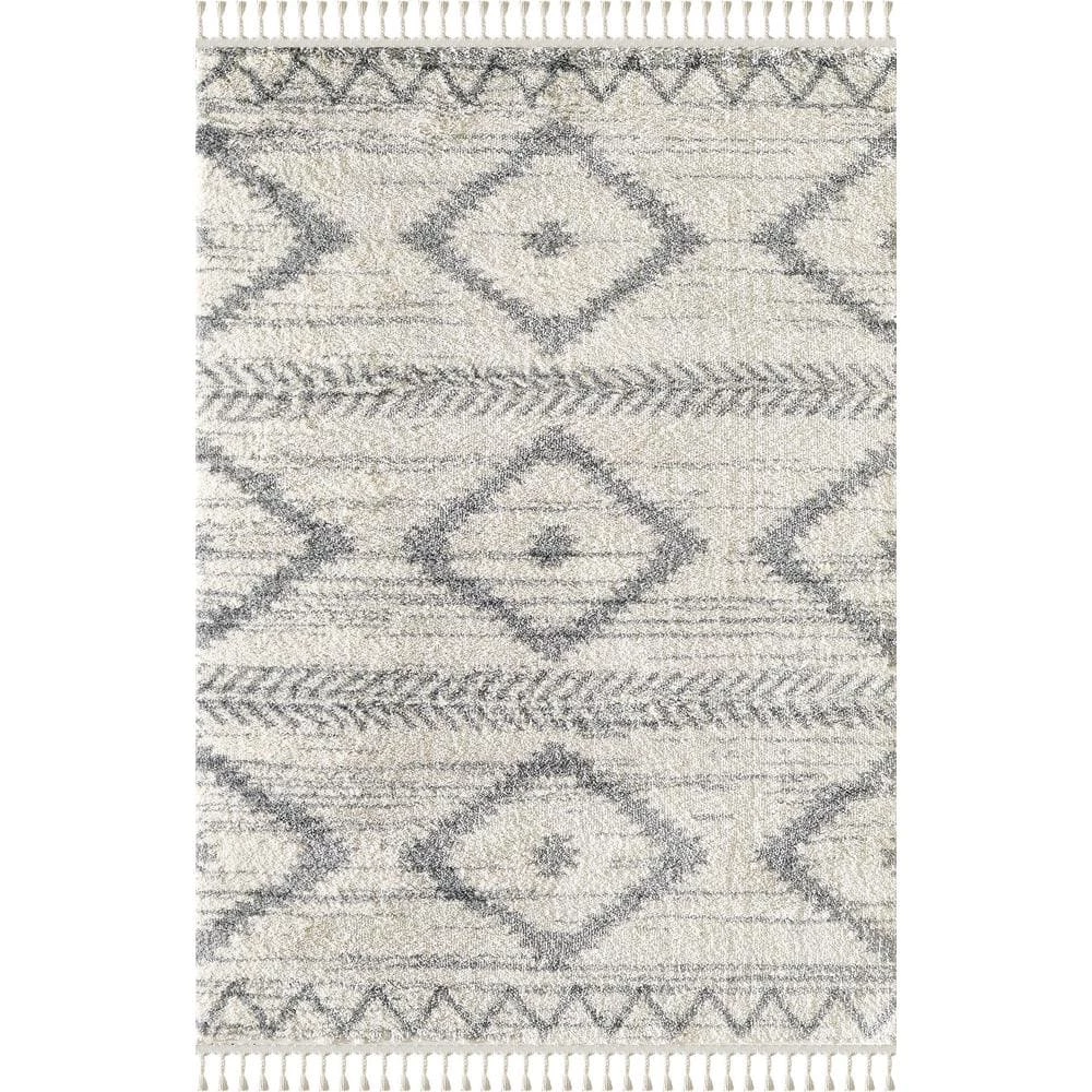Experience the blend of Moroccan style with mid-century modern flair with this Willow bohemian geometric area rug. When you think of mid-century decor, you likely picture plush, shag carpets and understated elegance. With this geometric pattern inspired by the Moroccan tradition of rug making, you can welcome a bohemian mix of the old and the new. Zig zag grey borders surrounding repeated geometric shapes and cross hatching adds an unexpected texture to this easy-care work of art. Whether you have a classically modern interior or a traditional approach to decor, this rug will fit right in.